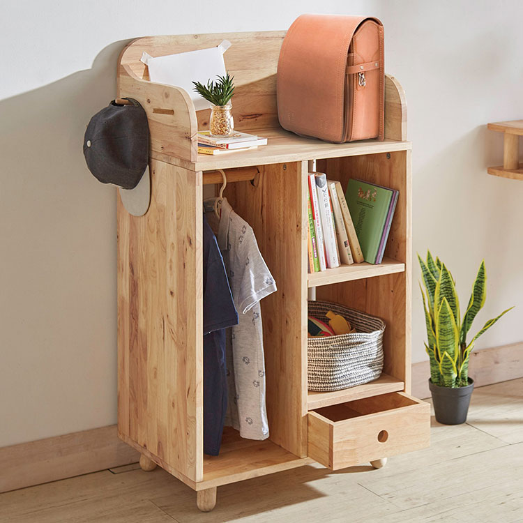 ランドセルラック 天然木 幅60cm ハンガーラック付き オープンロッカー 木目 木製 収納 子ども部屋 子供 おしゃれ 北欧 ナチュラル オープンシェルフ 代引不可