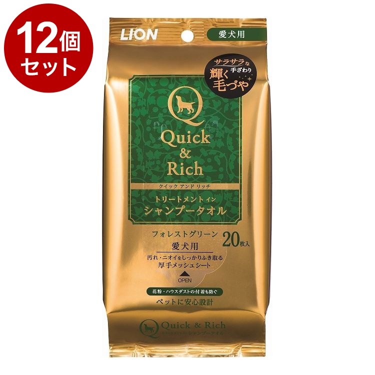 12個セット ライオンペット Quick&Rich トリートメントインシャンプータオル 愛犬用 フォレストグリーン 20枚