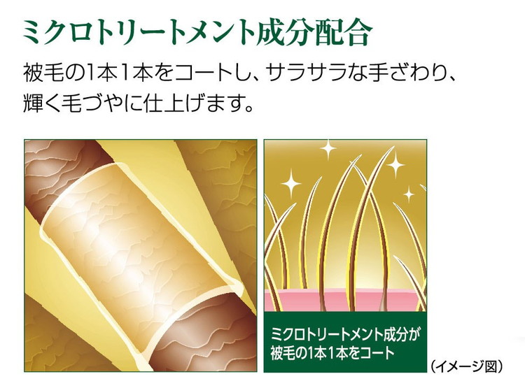 ・ミクロトリートメント成分が被毛の1本1本をコートし、指通りなめらか、サロンのような仕上がりに。
