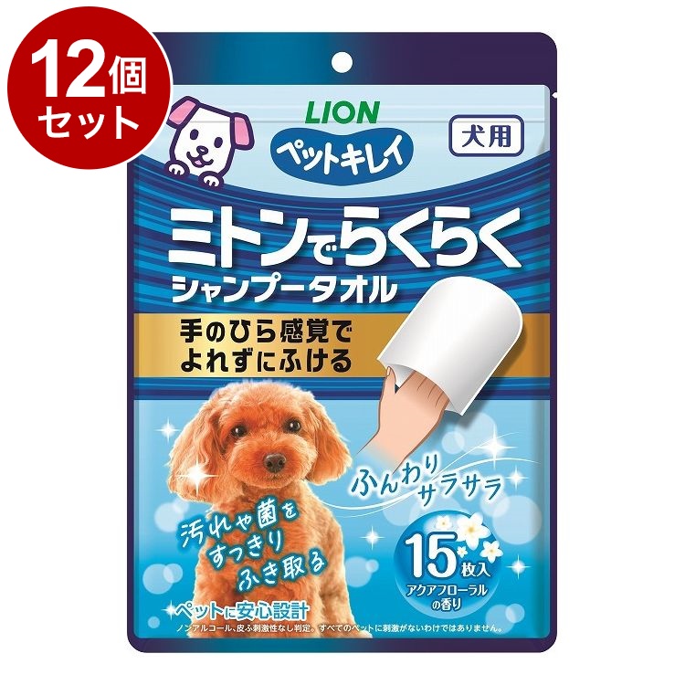 12個セット ライオンペット ペットキレイ ミトンでらくらくシャンプータオル 犬用 アクアフローラルの香り 15枚入