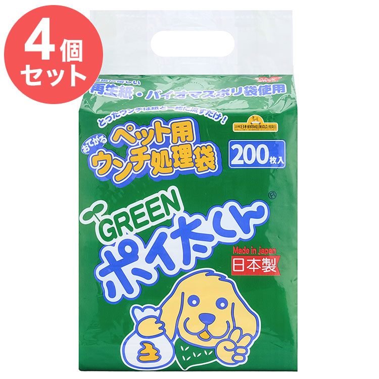 4個セット ペット用 うんち袋 GREEN ポイ太くん 200枚 ×8 合計800枚 トイレに流せる ウンチ袋 散歩袋 マナー袋 うんち処理袋 おさんぽ袋 流せる