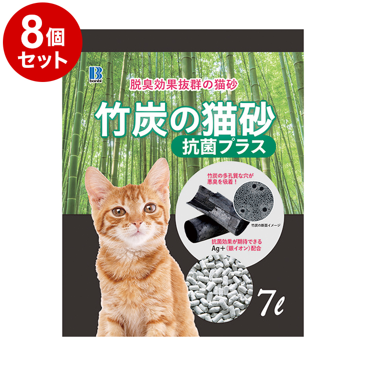 8個セット ボンビアルコン 竹炭の猫砂 抗菌プラス7L 脱臭 消臭 固まる 燃やせる 燃えるゴミ可 紙砂 紙の猫砂 ねこ砂 猫すな ボンビ まとめ売り