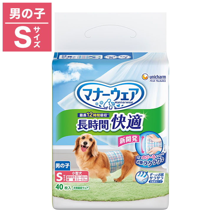 ユニチャーム マナーウェア 長時間 快適オムツ 男の子用 Sサイズ 40枚 ペット用 オムツ おむつ 紙おむつ 超小型犬用 小型犬用 中型犬用 犬用 老犬