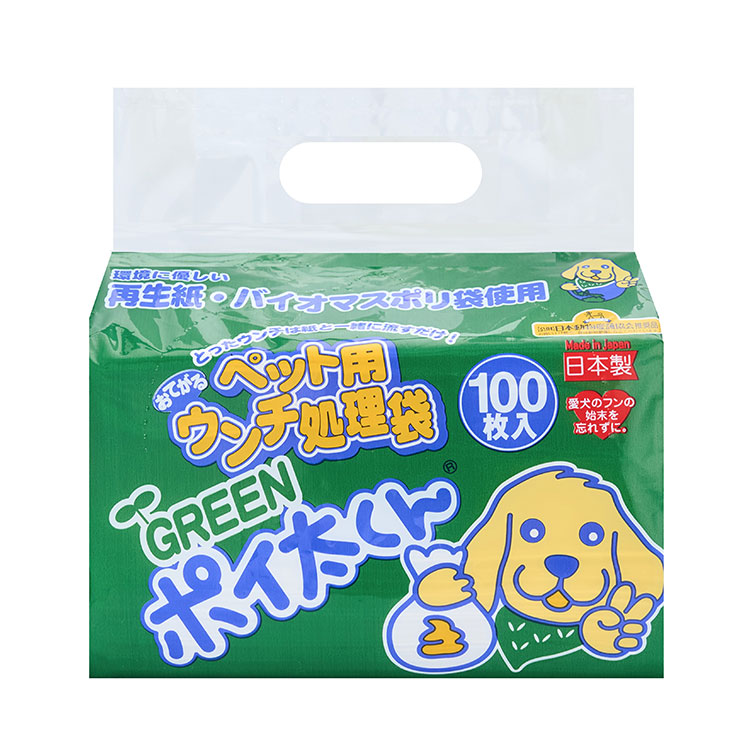 ペット用 うんち袋 GREEN ポイ太くん 100枚 トイレに流せる ウンチ袋 散歩袋 マナー袋 うんち処理袋 おさんぽ袋 流せる 大容量 犬用 犬 ぽいたくん
