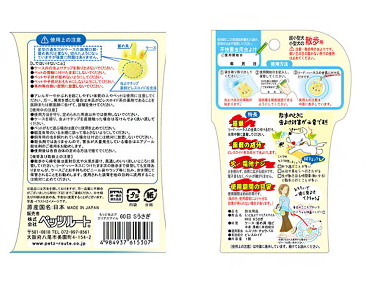 2個セット ペッツルート もっと虫よけエリアスマイル 60日 S うさぎ 防虫 虫よけ 虫除け 散歩 お散歩 お出かけ 小型犬 超小型犬 犬用 代引不可 メール便