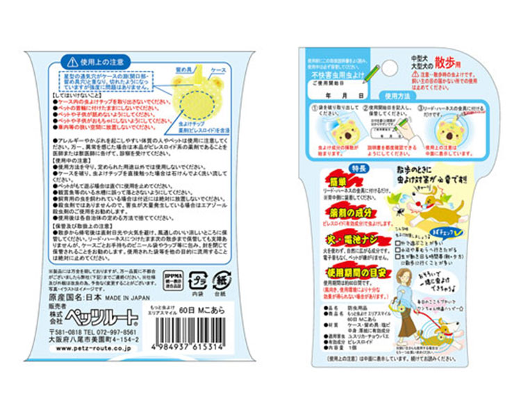 2個セット ペッツルート もっと虫よけエリアスマイル 60日 M こあら 防虫 虫よけ 虫除け 散歩 お散歩 お出かけ 小型犬 超小型犬 犬用 代引不可 メール便