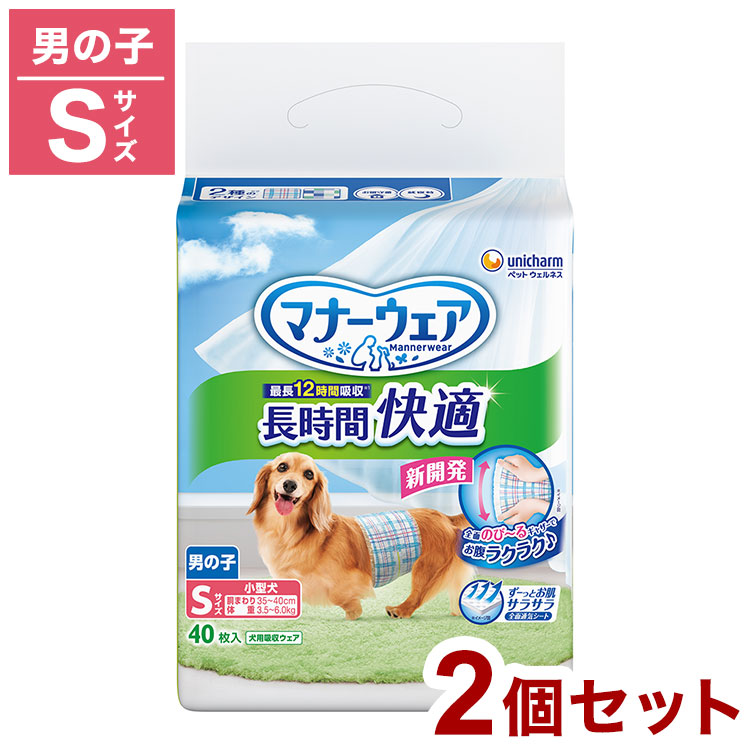 2個セット ユニチャーム マナーウェア 長時間 快適オムツ 男の子用 Sサイズ 40枚 ペット用 オムツ おむつ 紙おむつ 超小型犬用 小型犬用 中型犬用