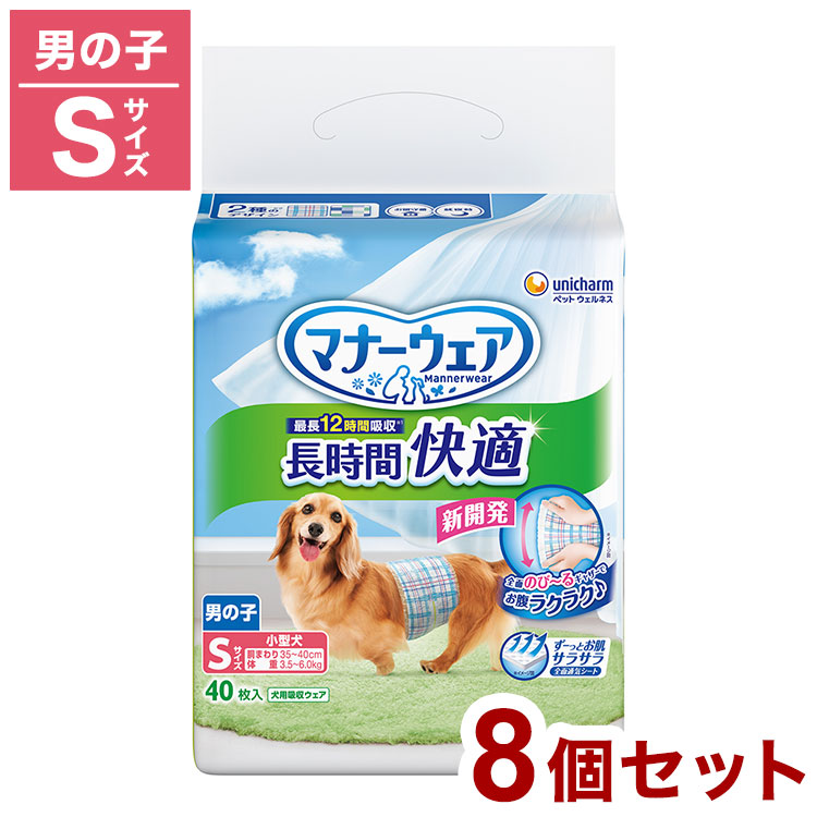8個セット ユニチャーム マナーウェア 長時間 快適オムツ 男の子用 Sサイズ 40枚 ペット用 オムツ おむつ 紙おむつ 超小型犬用 小型犬用 中型犬用