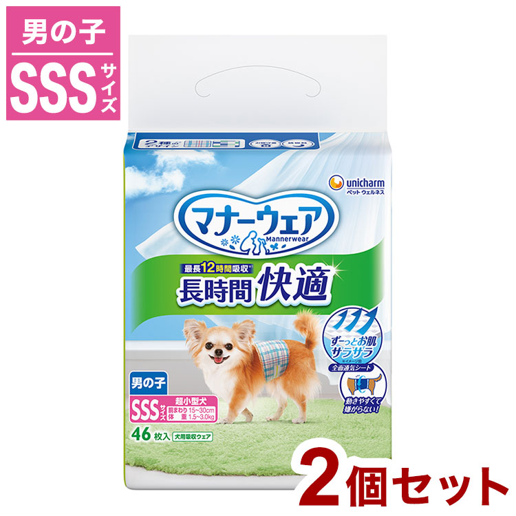 2個セット ユニチャーム マナーウェア 長時間 快適オムツ 男の子用 SSSサイズ 46枚 ペット用 オムツ おむつ 紙おむつ 子犬用 超小型犬用 小型犬用