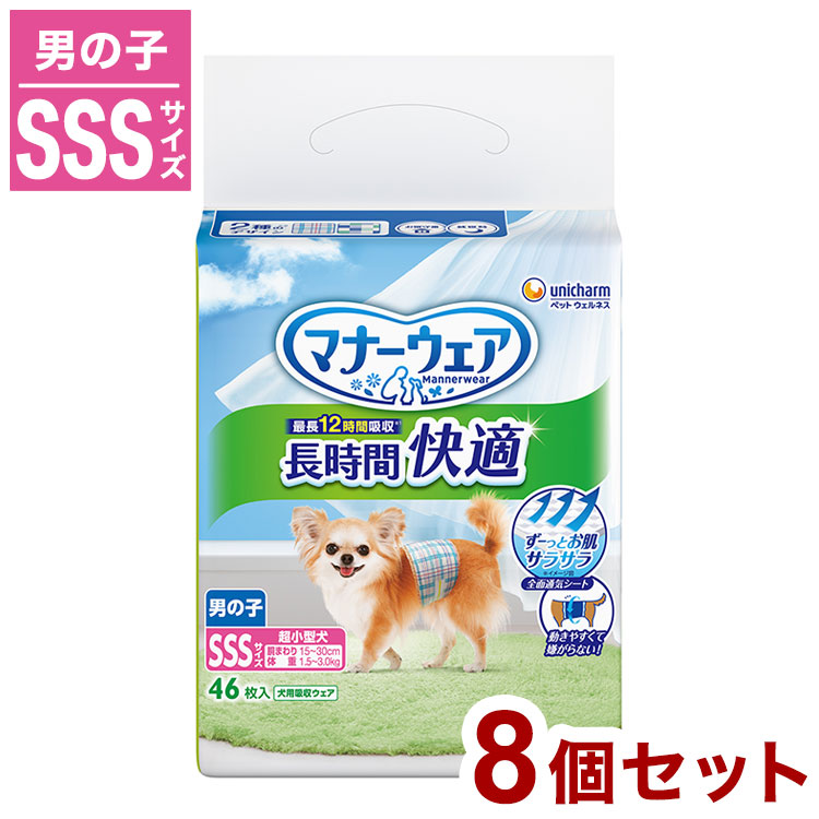8個セット ユニチャーム マナーウェア 長時間 快適オムツ 男の子用 SSSサイズ 46枚 ペット用 オムツ おむつ 紙おむつ 子犬用 超小型犬用 小型犬用