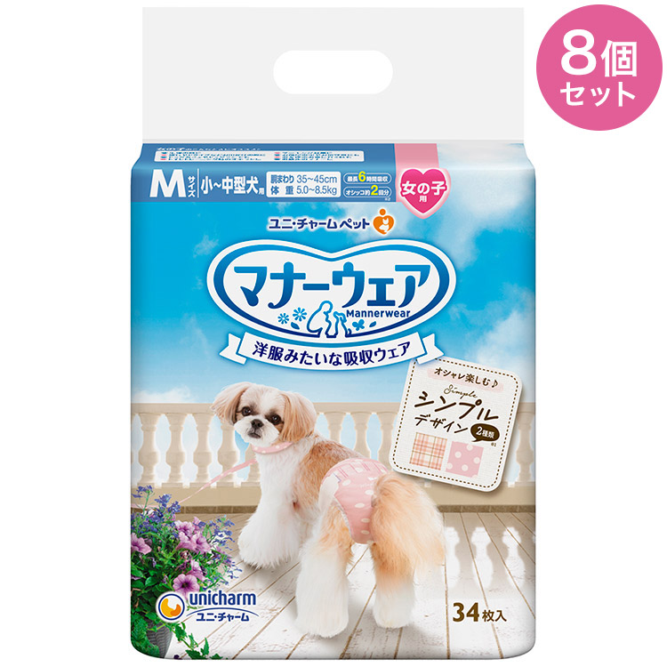 8個セット マナーウェア 女の子用 M モーヴピンクドット・ピンクチェック 34枚 小型犬用 中型犬用 犬用おむつ マナーおむつ ペット用 まとめ売り セット売り