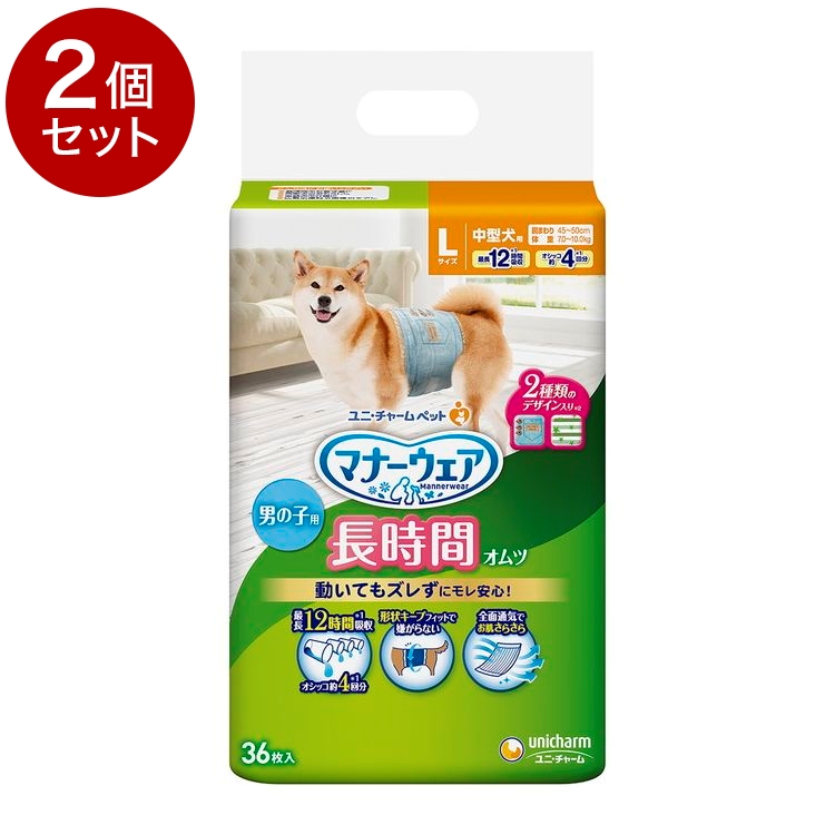 2個セット ユニチャーム マナーウェア 長時間オムツ 男の子用 Lサイズ 36枚x2 中型犬用 犬用おむつ マナーおむつ ペット用 まとめ売り セット売り