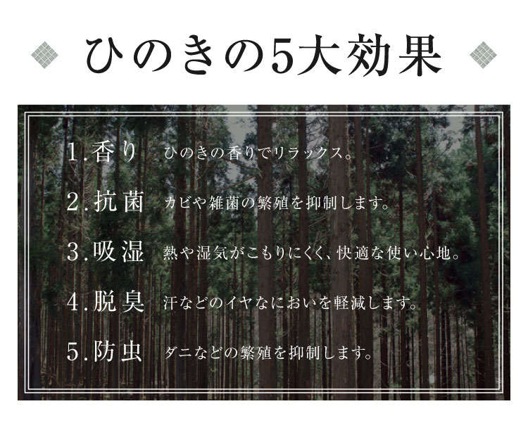 ヒノキの香りと心地よい感触で、毎日の眠りをより豊かに。