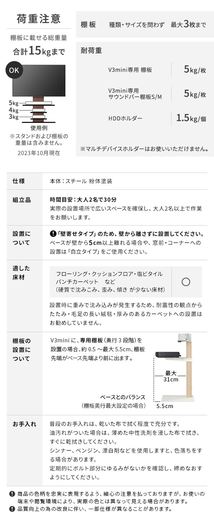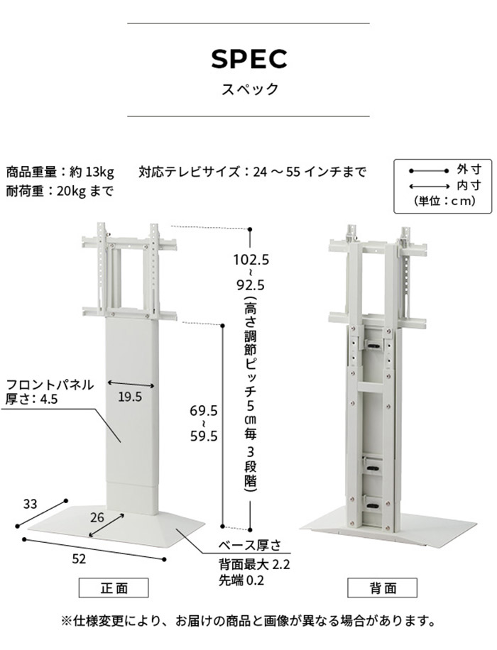 対応テレビサイズ:55インチ(20kg相当)まで