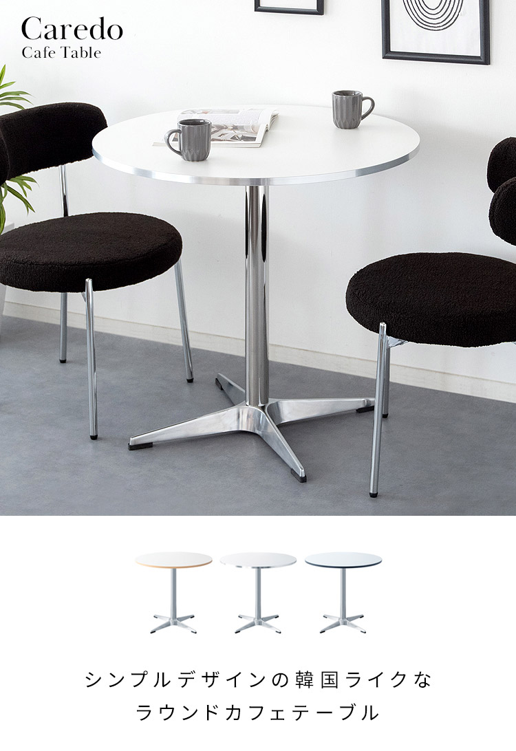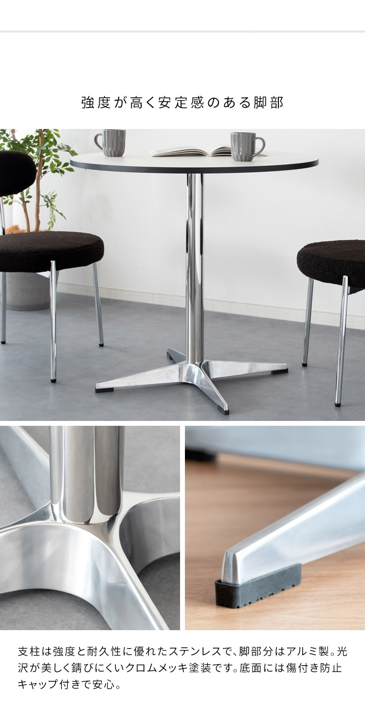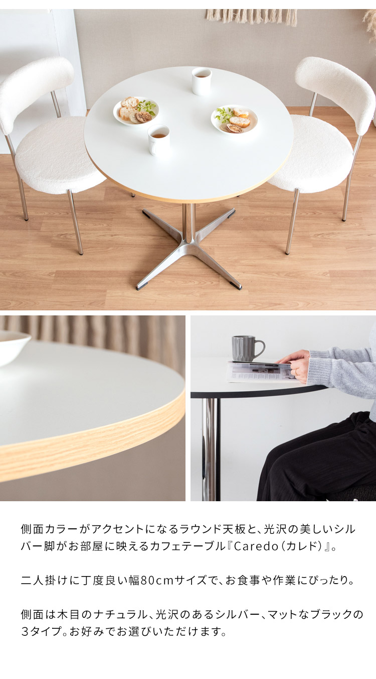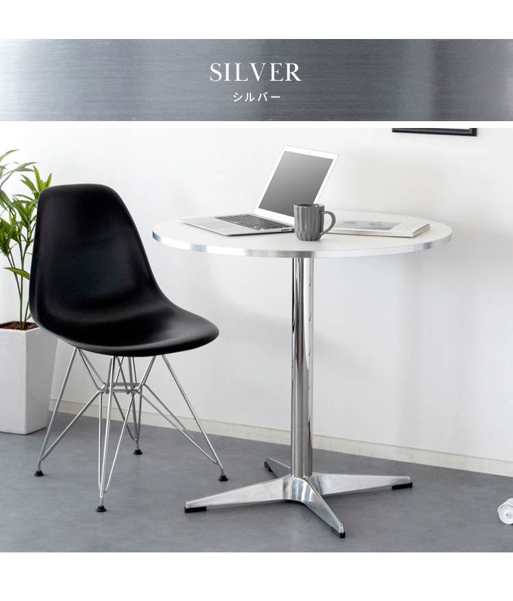 光沢の美しいシルバー脚がお部屋に映えるカフェテーブル『Caredo(カレド)』