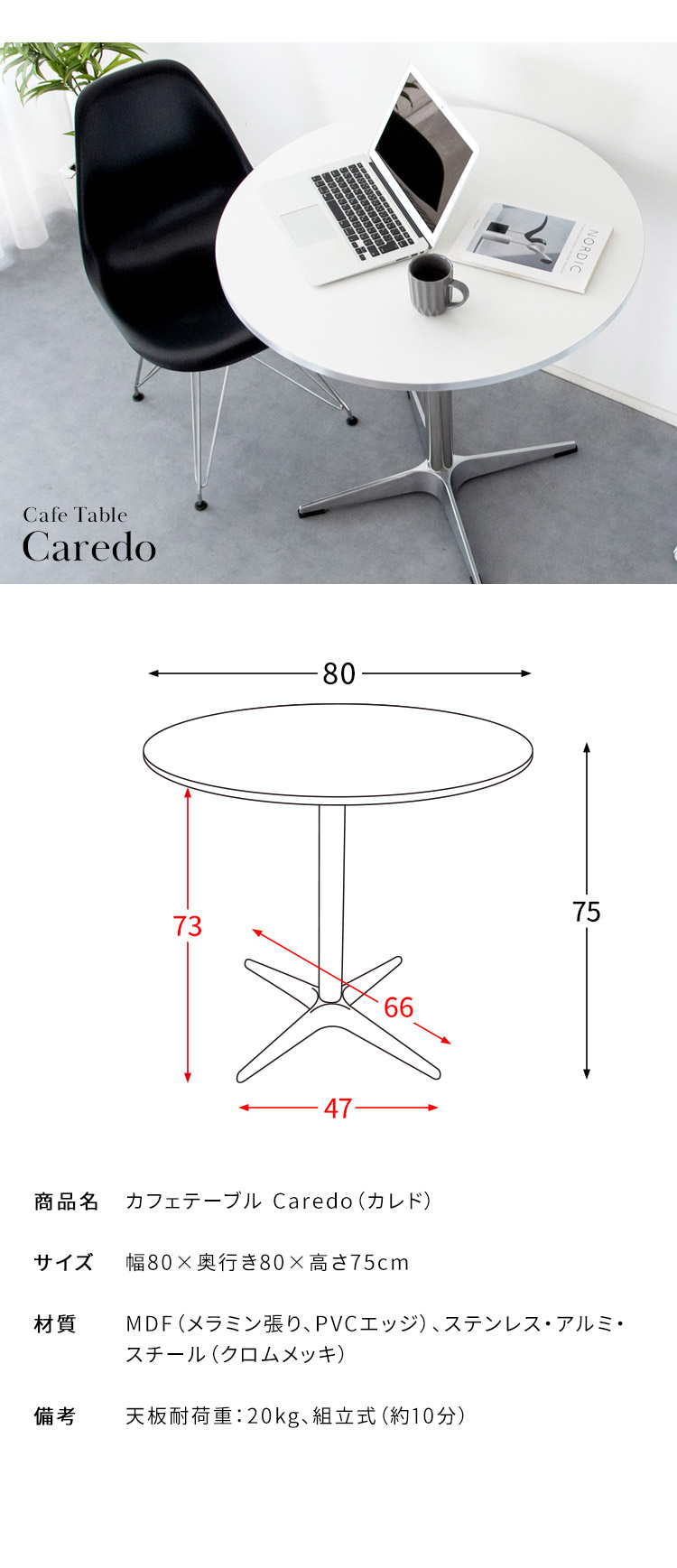 備考:天板耐荷重:20kg、組立式(約10分)