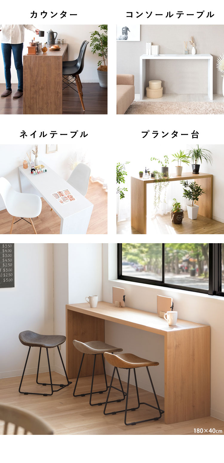 デスク シンプルデスク 幅180cm 奥行40cm 木製デスク マルチデスク デスク テーブル カウンター 作業台 リモートワーク PC作業 オフィス ダイニング 代引不可