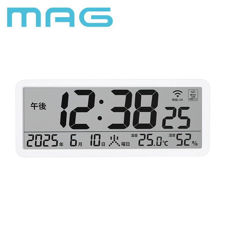 MAG マグ デジタル Wi-Fiと接続 無線LAN NTP 置き時計 壁掛け時計 掛時計 温度計 湿度計 温湿度計 シンプル インテリア リビング カウンター