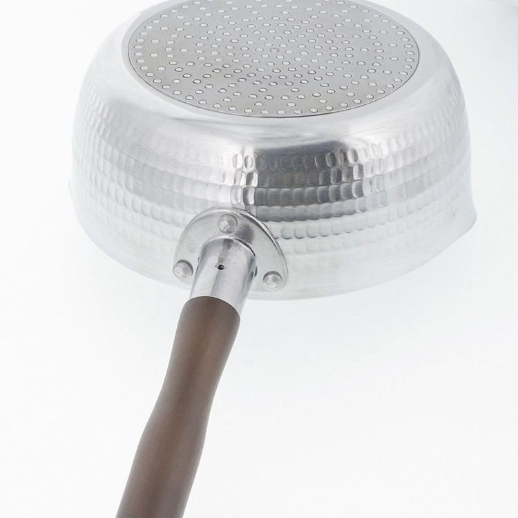 ■材質本体/アルミニウム合金、内面/ふっ素樹脂塗膜加工(ダイキンEK 耐摩耗性試験50万回クリア)、はり底/ステンレス鋼(クロム16%)、ハンドル/天然木
