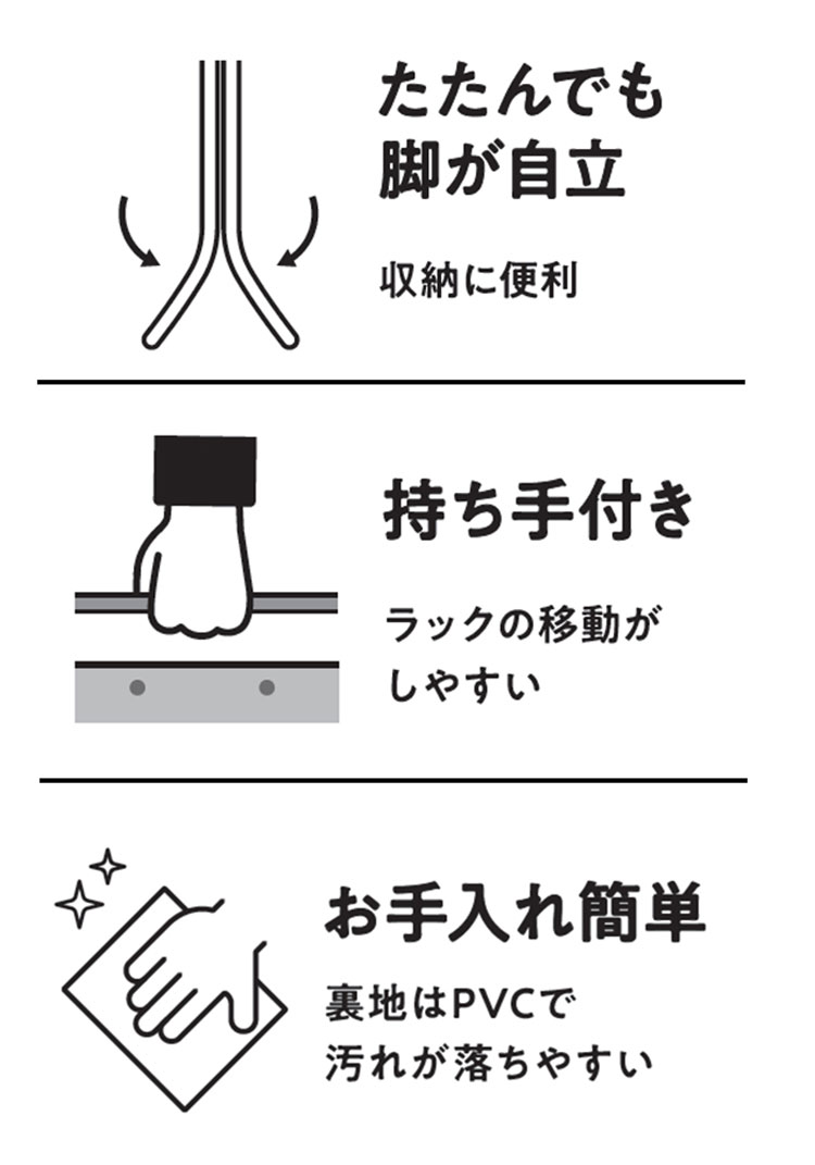 持ち手付きで移動も簡単、店舗や家庭での使用に最適です。裏地にはPVC加工が施されており、汚れに強くお手入れもラクラク。