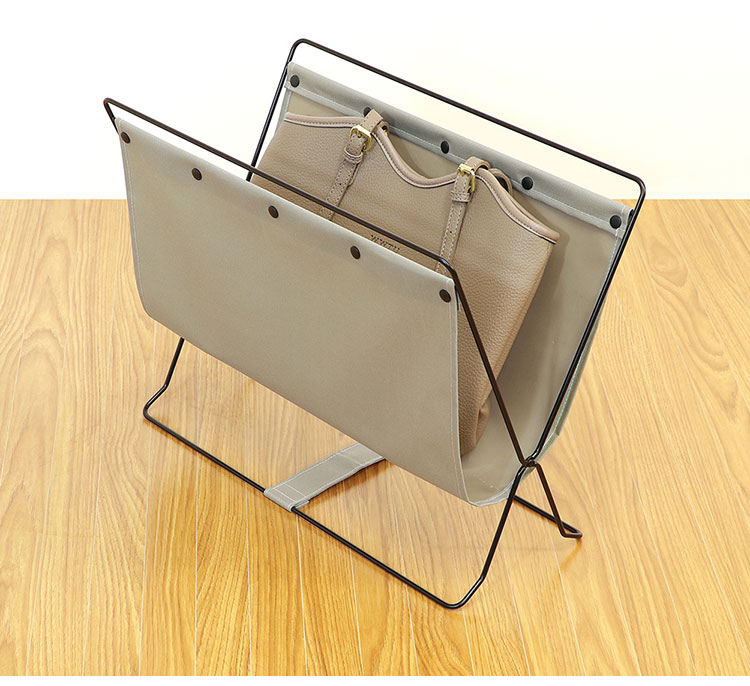 ハンモック型のデザインが特徴的なLIV PLUSの折りたたみ式フロアーラック。