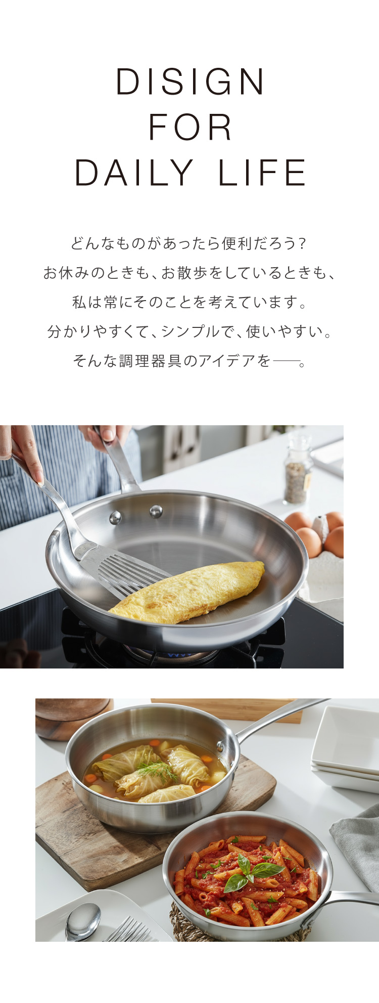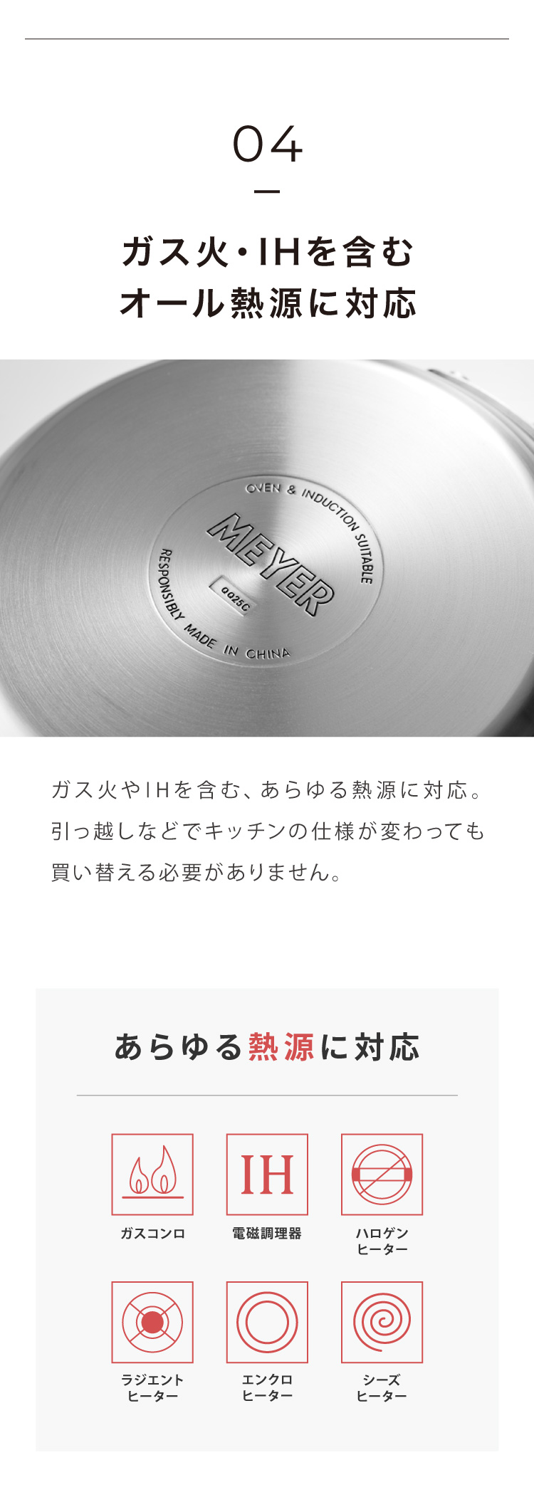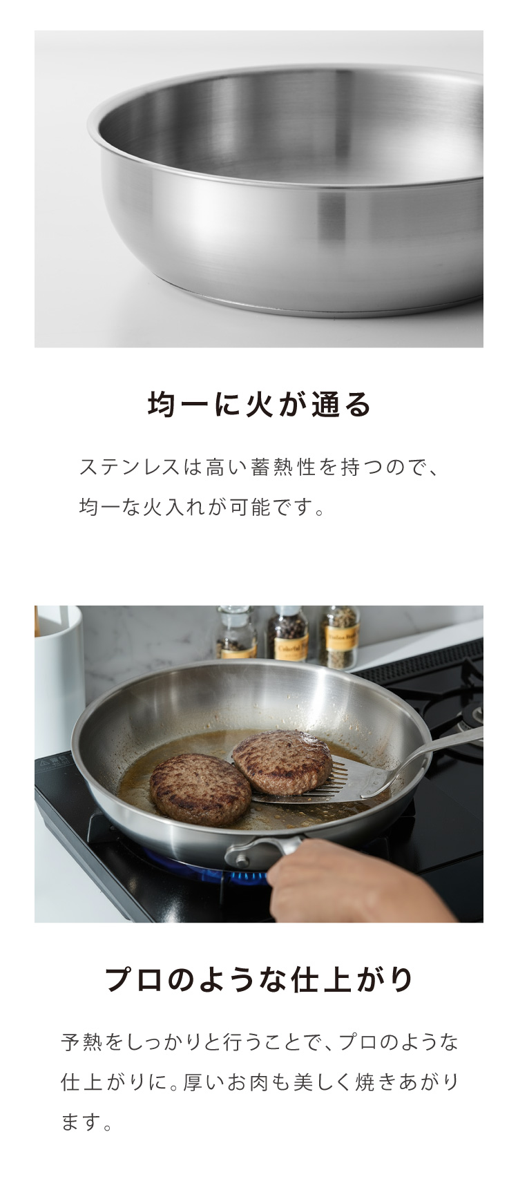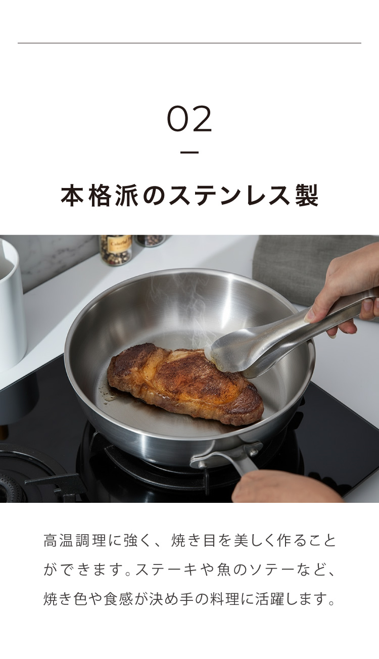 IH・ガスを問わず、さまざまな熱源に対応し、家庭でもプロのような仕上がりを実現します。