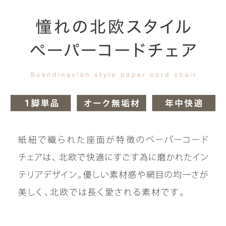 ダイニングチェア 単品 ペーパーコードチェア ナチュラル 完成品 PAPERCORD CHAIR オーク無垢材 天然木 椅子 いす イス チェアー パーソナルチェア 代引不可