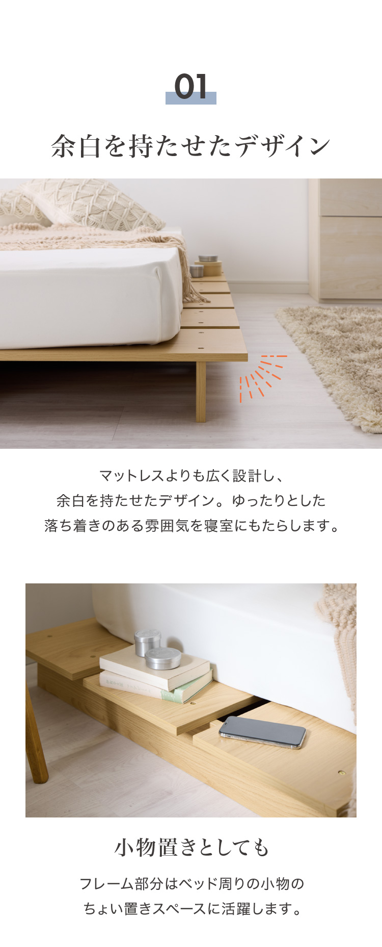 "北欧"と"和"を融合したイメージのベッドフレーム