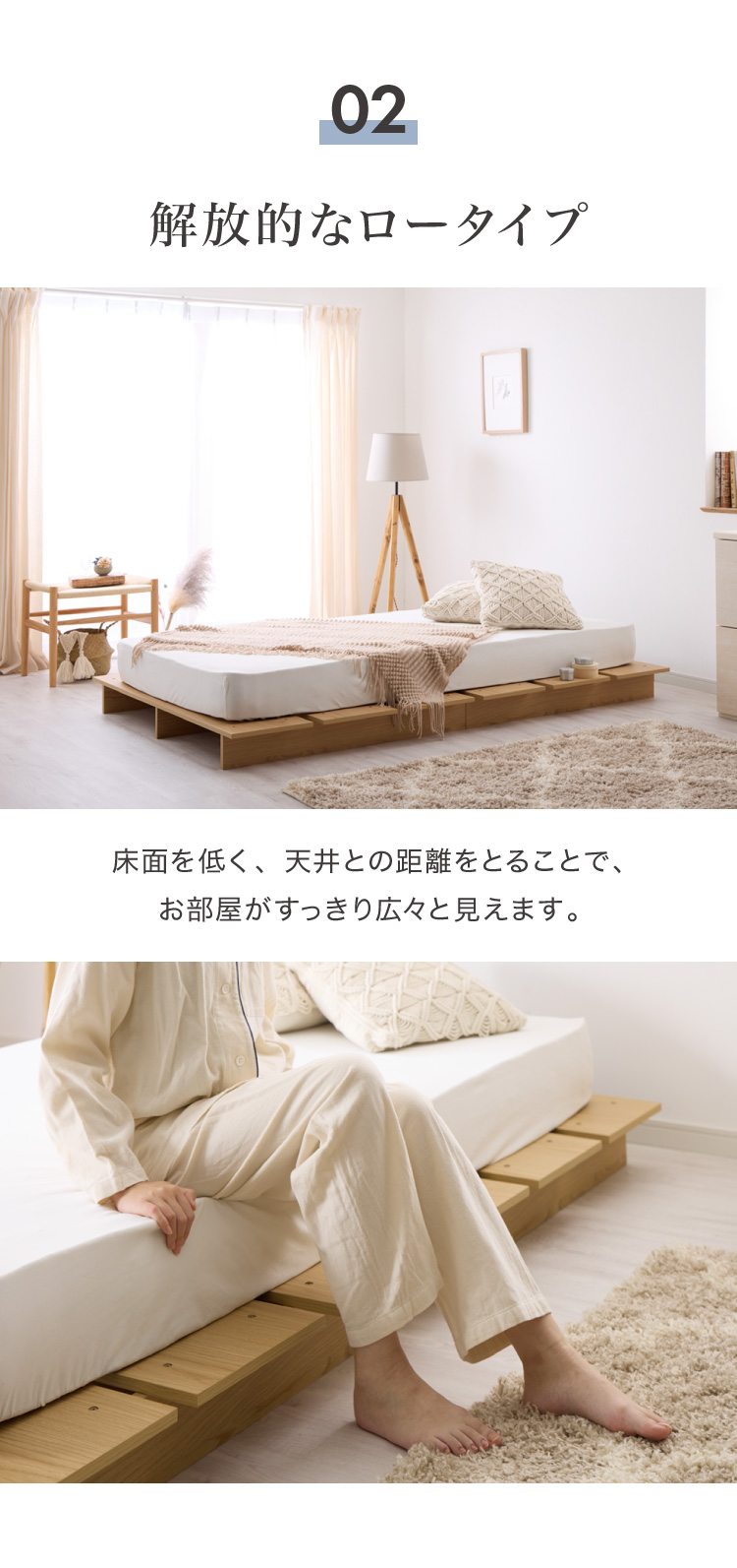 高さは13cmとロースタイル仕様なので圧迫感がなくお部屋を広く見せることができます。