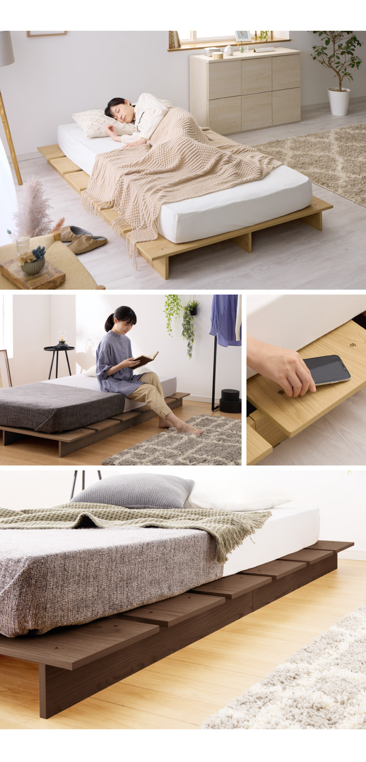 セット販売ステージベッド シングル ポケットコイルマットレス ベッドフレーム すのこベッド おしゃれ 韓国インテリア 北欧 すのこ 脚付き 木目調 低床