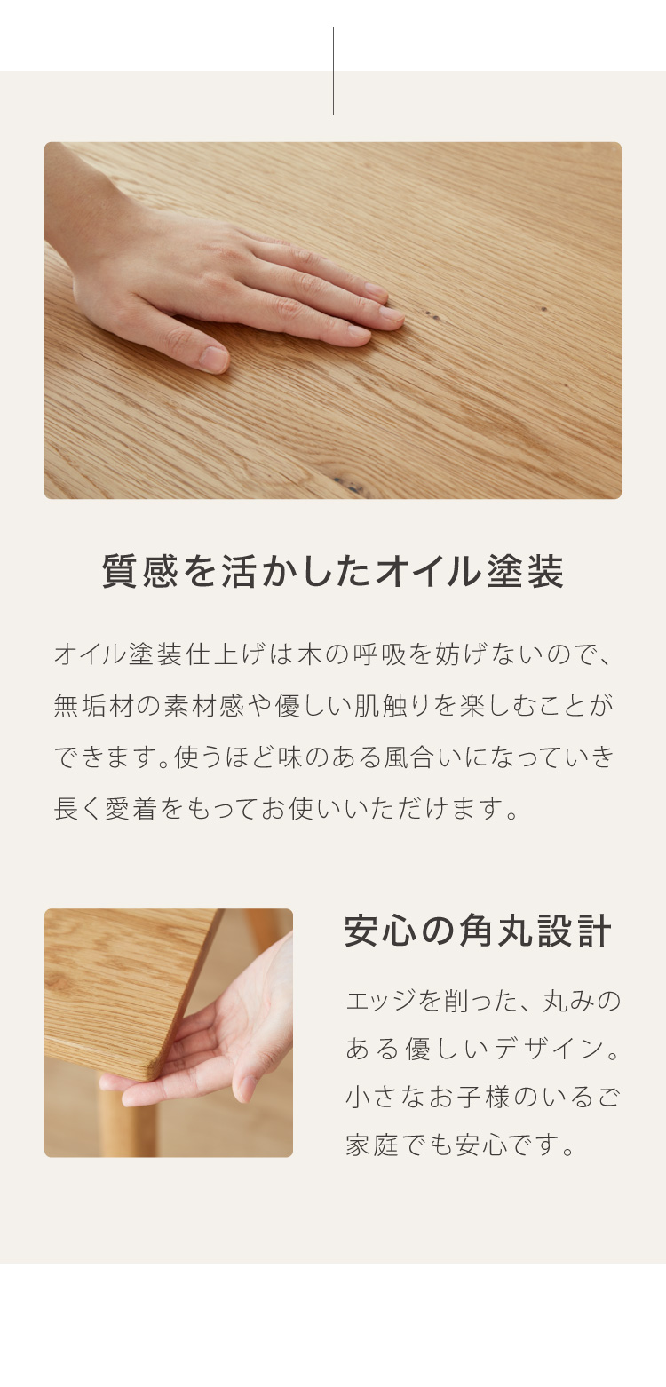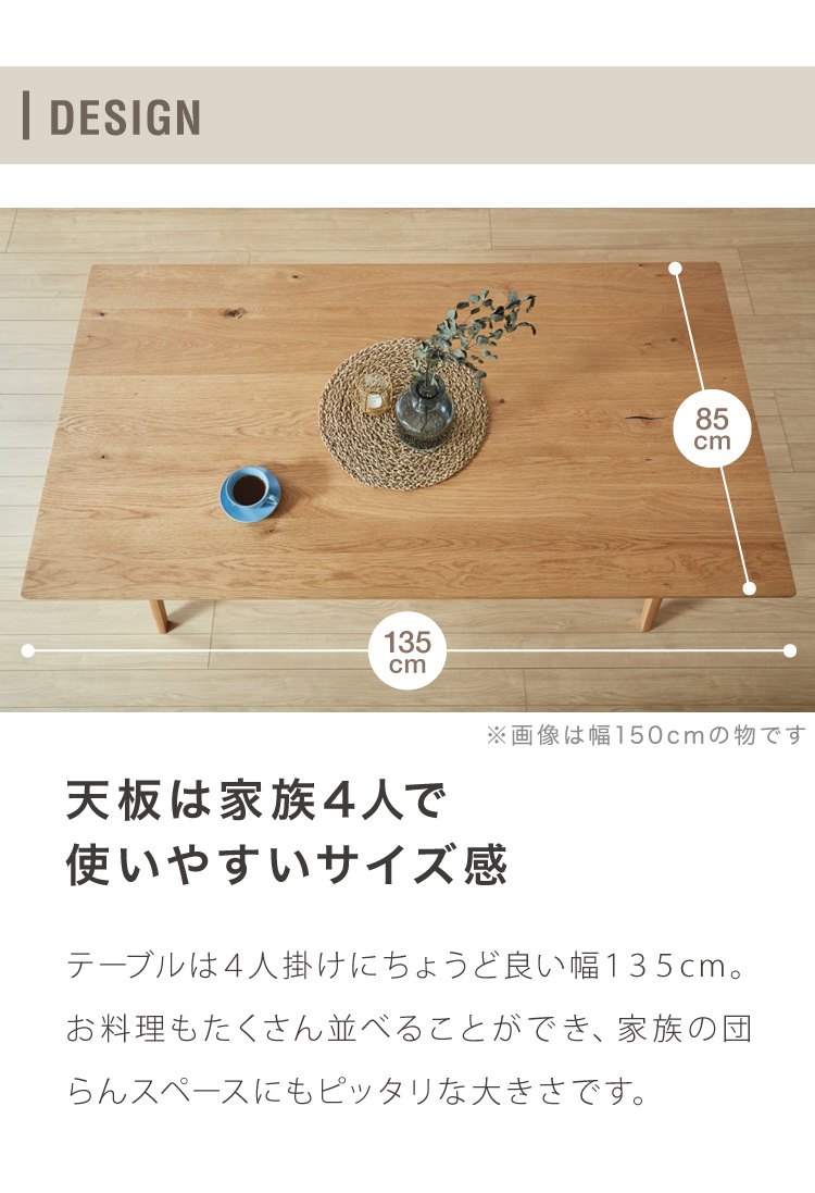 ぬくもりのある天然木オーク材を使用した、ダイニングテーブルです。