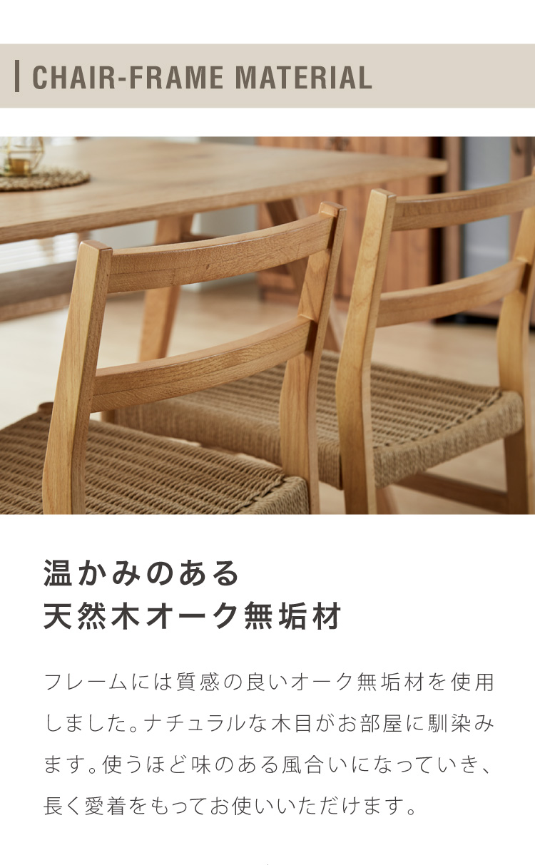 チェアはおしゃれなペーパーコードを使用。北欧スタイルのお部屋にも相性抜群です