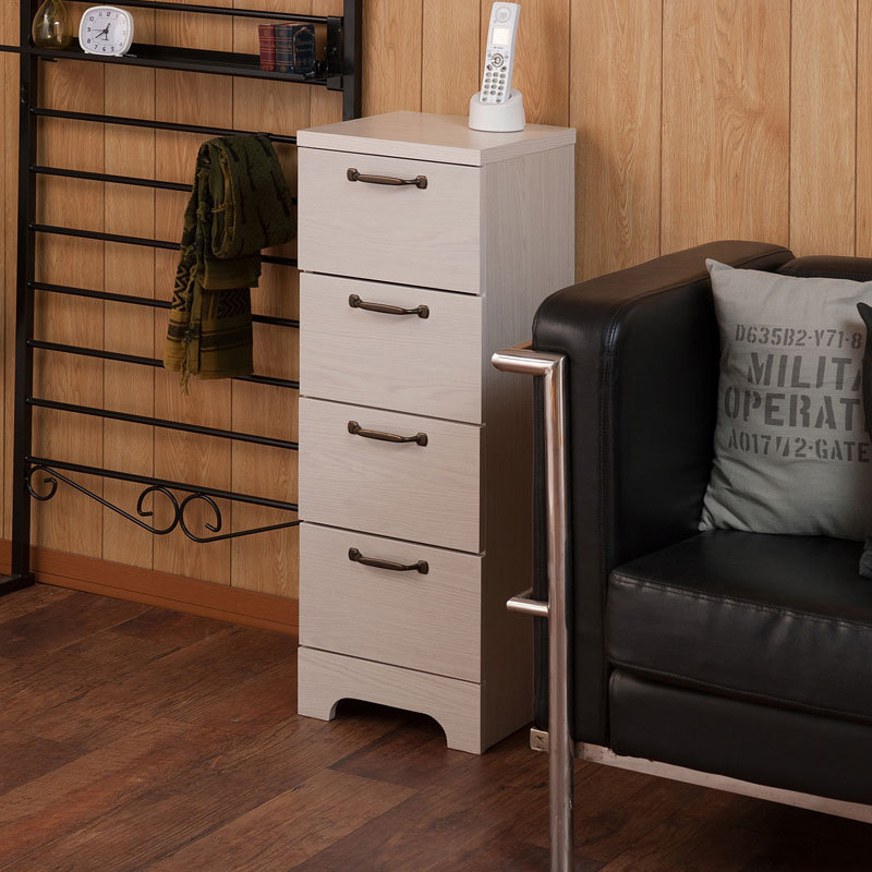 カウンター下 チェスト 幅30 四段 4段 カウンター ホワイト 白 スリム リビング 収納 引き出し 引出し おしゃれ アンティーク 北欧 代引不可