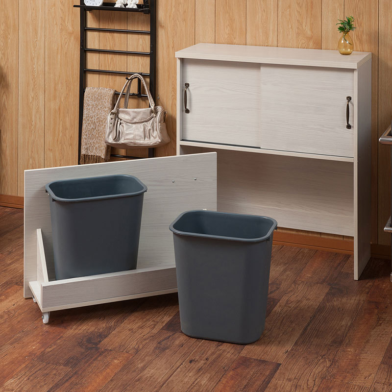 二分割 ダストボックス付き カウンタ― 幅80 収納 白 ホワイト スリム コンパクト 収納 ゴミ箱 キャスター付き カウンター下 引き戸 おしゃれ 代引不可