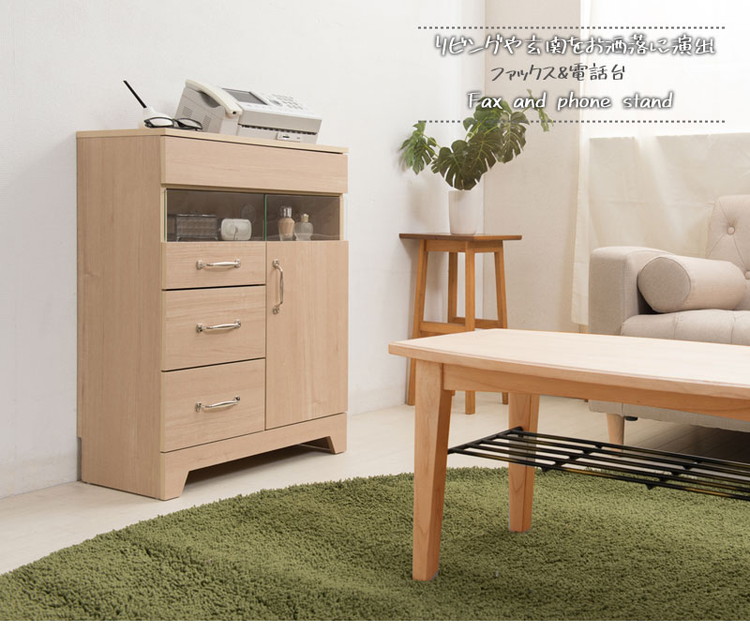 FAX台 幅60 ナチュラル 電話台 ルーター収納 チェスト 木目 キャビネット シンプル 玄関 リビング コンパクト 収納ボックス 収納ケース 棚 ラック 代引不可