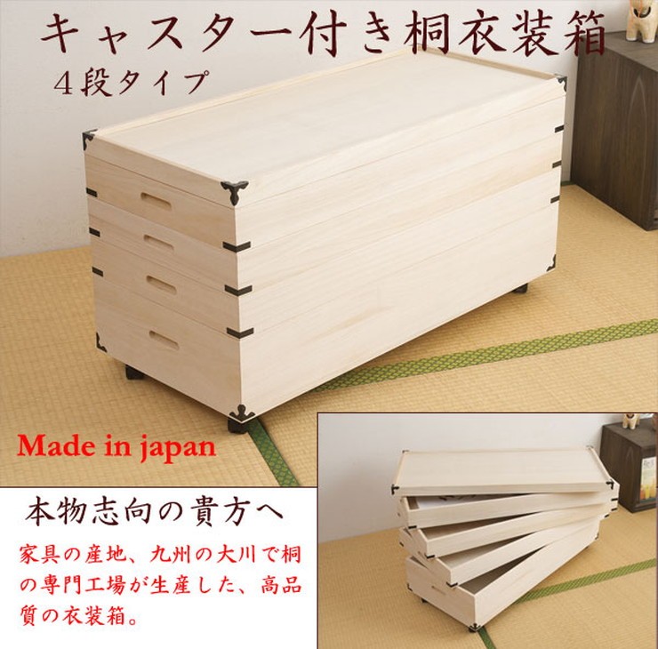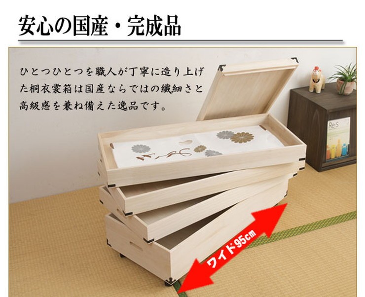 日本製 4段 桐 キャスター付き 衣装箱 衣裳箱 桐衣装箱 幅95 奥行き42 高さ48 収納 キャスター付き 四段 国産 押入れ 押入れ収納 完成品 代引不可