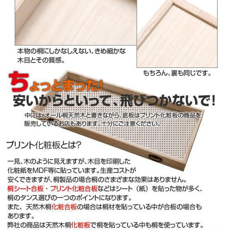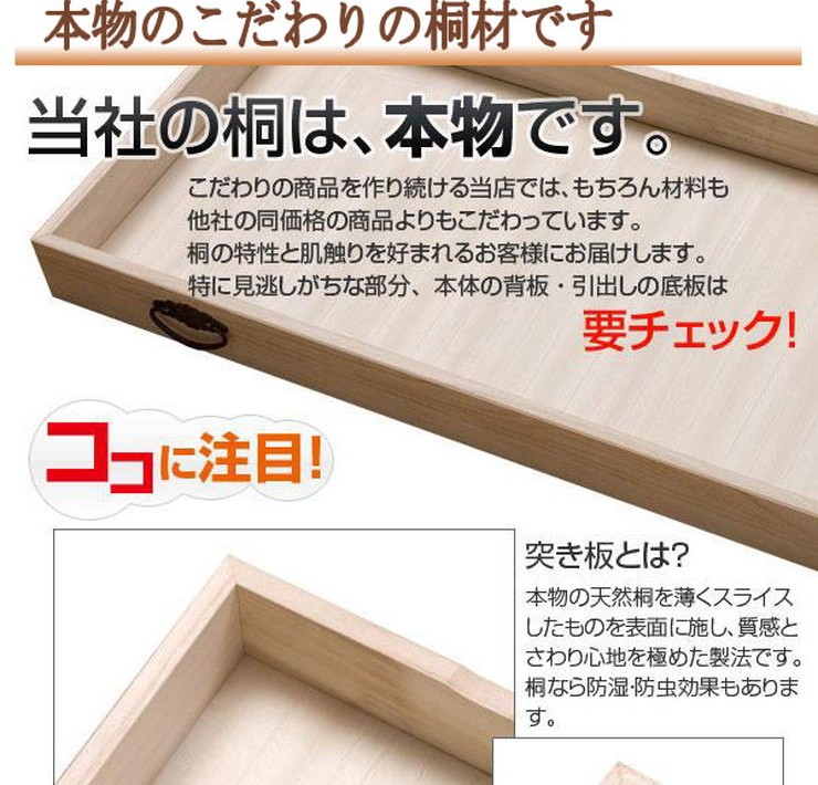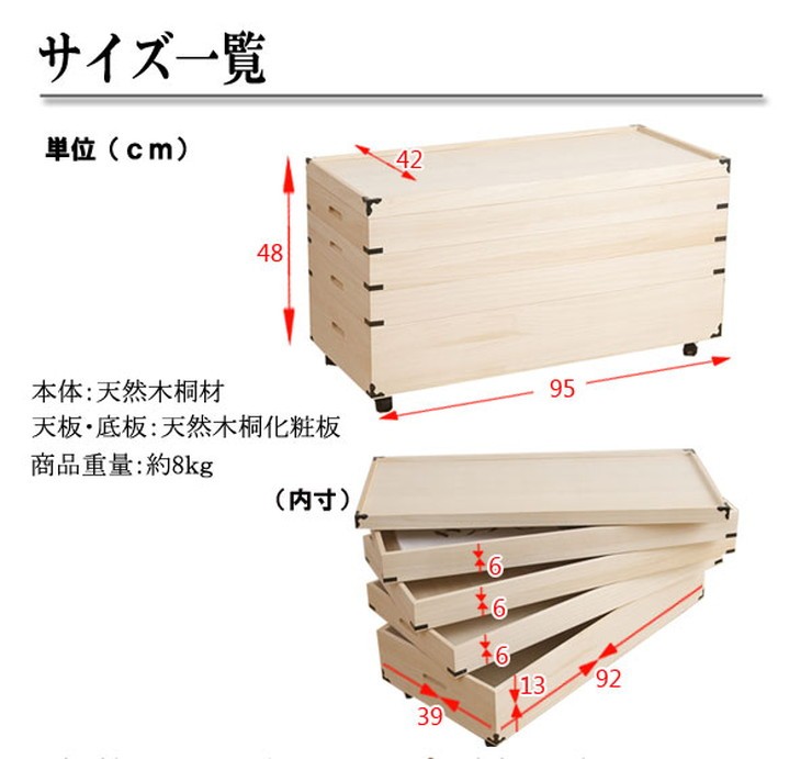 幅が少し大きめに作ってあり92cm幅までのたとう紙が入ります家具で有名な九州・大川で生産■商品の仕様主材:天然木(桐材)その他:天然木桐化粧板完成品(キャスター取付)国産品■商品サイズ:(約)幅95×奥行42×高さ48cm内寸(浅):(約)幅92×奥行39×深さ6cm内寸(深):(約)幅92×奥行39×深さ13cm幅が少し大きめに作ってあり92cm幅までのたとう紙が入ります家具で有名な九州・大川で生産■商品の仕様主材:天然木(桐材)その他:天然木桐化粧板完成品(キャスター取付)国産品■商品サイズ:(約)幅95×奥行42×高さ48cm内寸(浅):(約)幅92×奥行39×深さ6cm内寸(深):(約)幅92×奥行39×深さ13cm