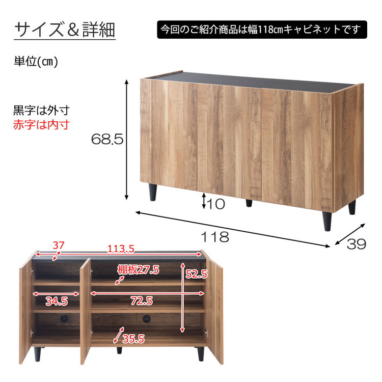 本体:(約)幅118×奥行39×高さ68.5(脚部10含む)cm