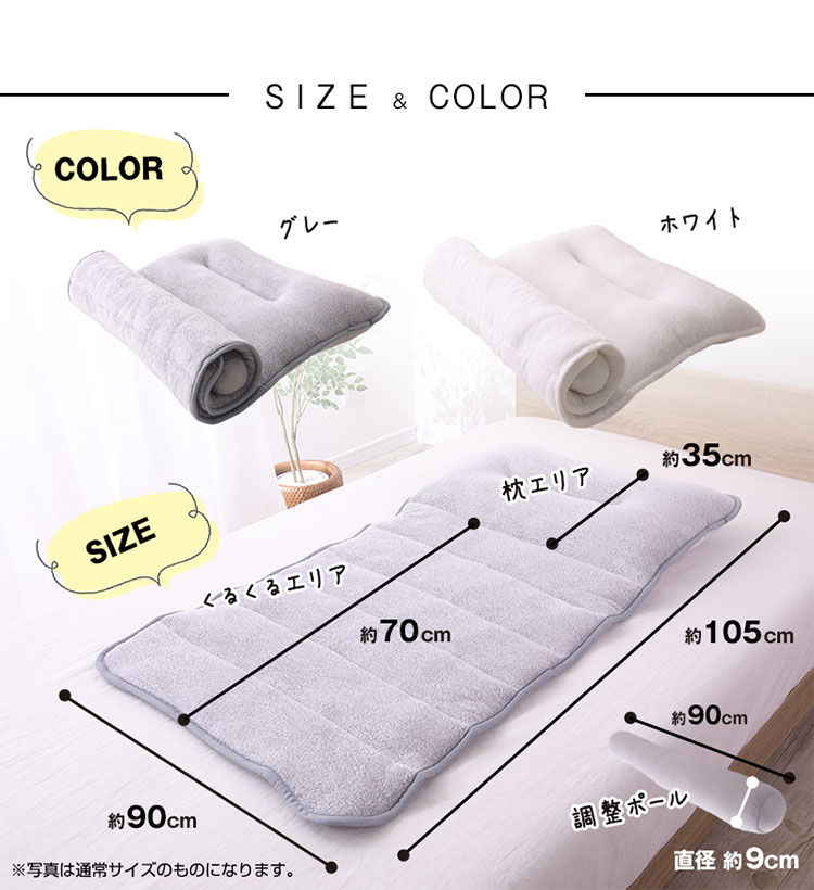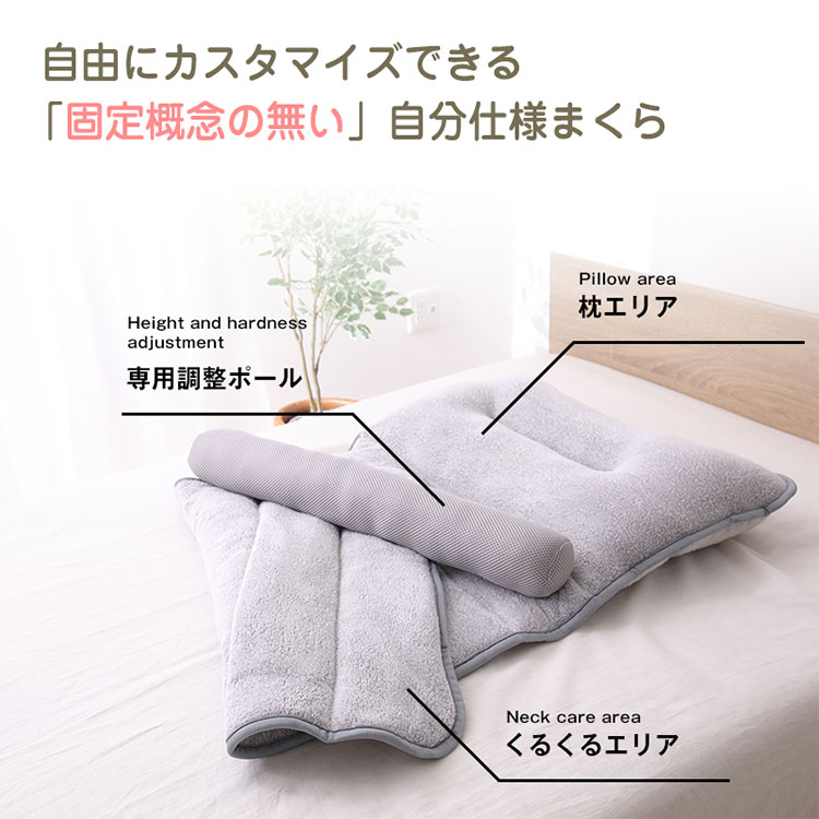 くるくる枕 タオル地 カスタマイズ 専用調整ポール 無段階 洗える 高め 低め 横向き寝 仰向き寝 お子様 お昼寝マット タオル タオル枕 綿100% 吸水