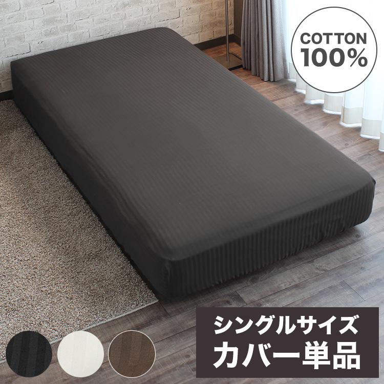 ボックスシーツ シングルサイズ 綿100% ベッドシーツ サテン織 ストライプ柄 全周ゴム ワンタッチ装備 イニコ iniko 寝具 ベッド おしゃれ かわいい
