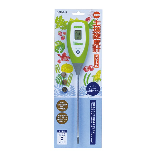 高森コーキ 家庭用 土壌酸度計 デジタル式 60秒でスピード測定 ボタン電池3個付 作物140種の目安表付 pH計 代引不可