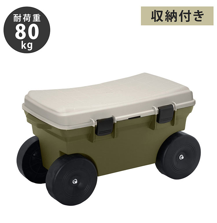 グリーンパル 日本製 フィールドカート オリーブグリーン 収納付き 耐荷重80kg ガーデニング 園芸 草刈り 腰かけ 腰掛け 台車 椅子 洗車 代引不可