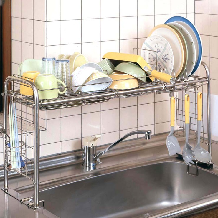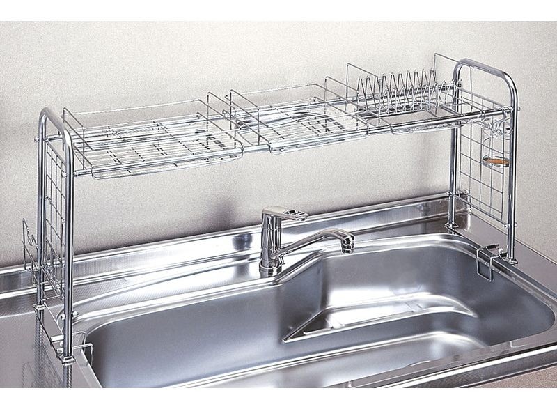 大・小の水切りバスケット、皿立て付ですので、食器・箸・まな板まで一気に収納できます。