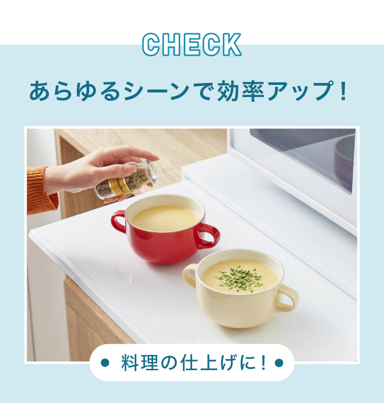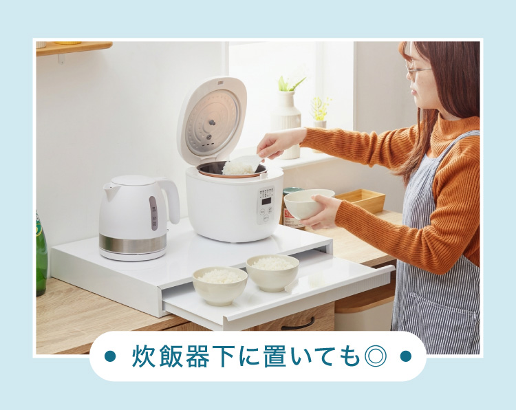 レンジ調理の出し入れや炊飯器からご飯をよそう時、お弁当の準備など、ちょい置きスペースができるだけで効率もアップ。