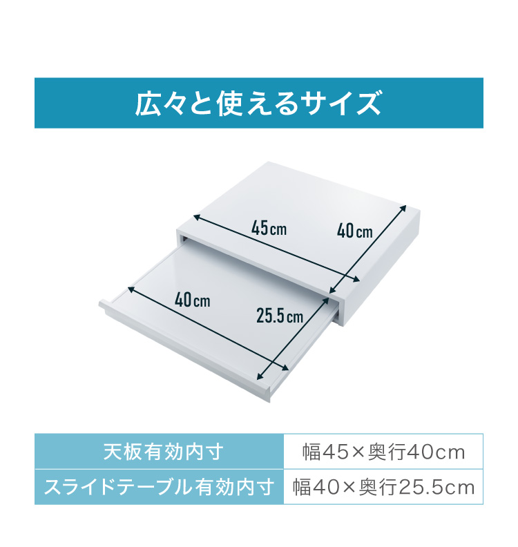 簡単に引き出せるスライドテーブルで、不要な時はスッキリきれいに!
