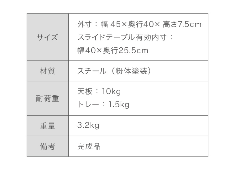 スライドテーブル有効内寸:幅40×奥行25.5cm