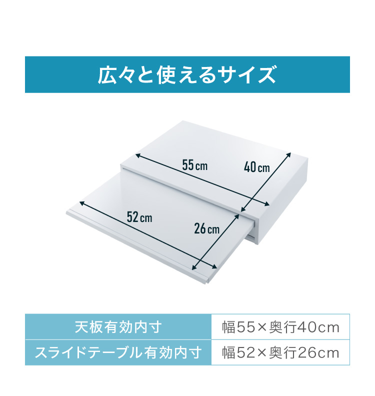 簡単に引き出せるスライドテーブルで、不要な時はスッキリきれいに!