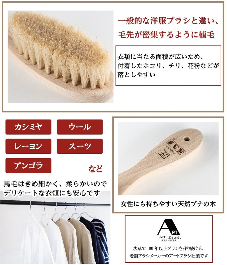 ◆浅草アートブラシの白馬毛を100%使用した洋服ブラシです。