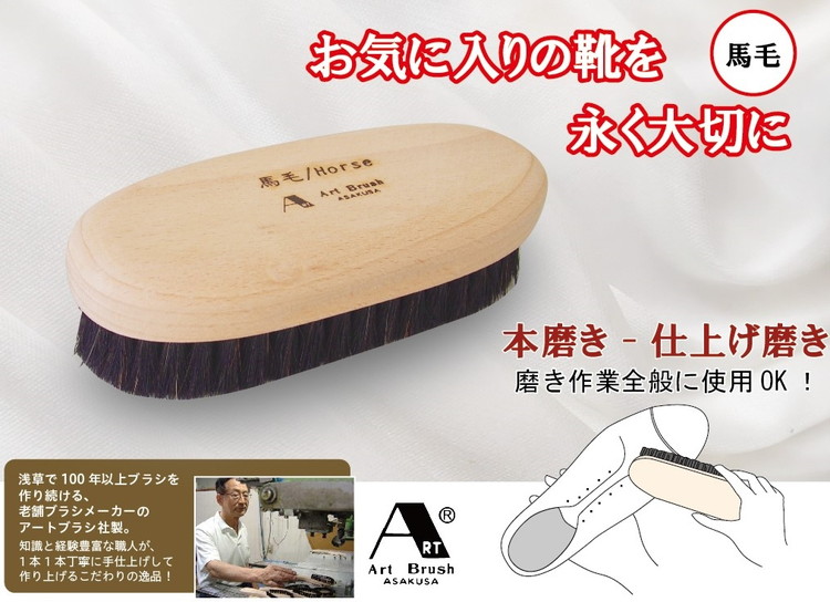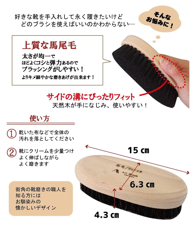 日本製 ブラシ 靴のお手入れブラシ 磨き一筋 黒馬毛 靴磨き