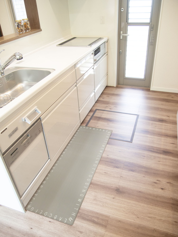 従来の拭けるマットより薄いので、全体の重量も軽く、移動もラクです。塩化ビニル樹脂で柔らかく弾力もあるので、長時間立っていても疲れにくい。